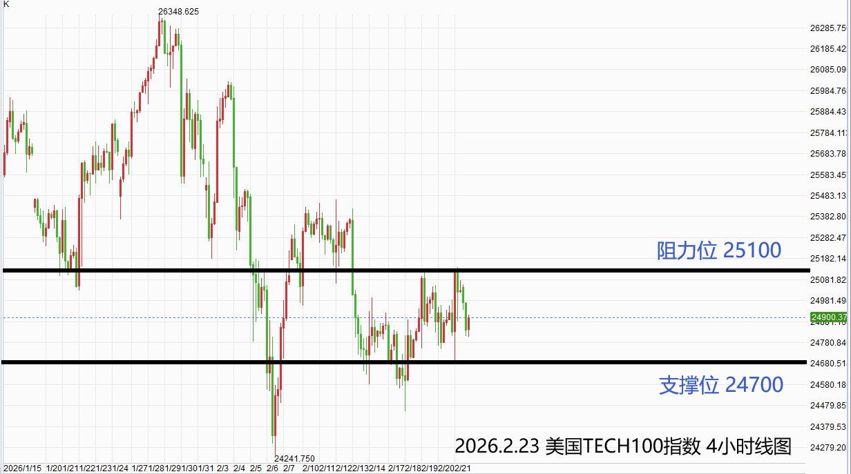 美国TECH100指数:激进者偏多操作,多单参考价24800-24850,止损位24700,获利标25100附近/以上。