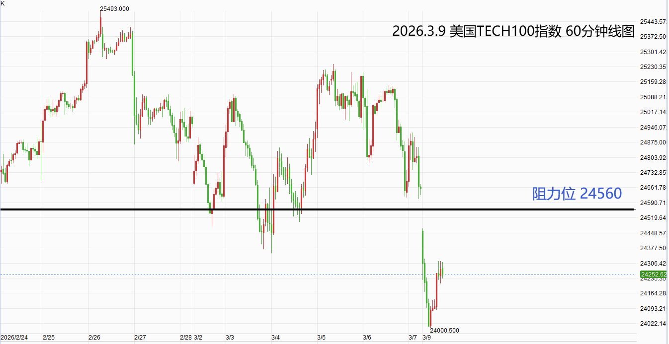 美国TECH100指数:激进者偏多操作,多单参考价24150~24200,止损位23950,获利标24560附近/以上。