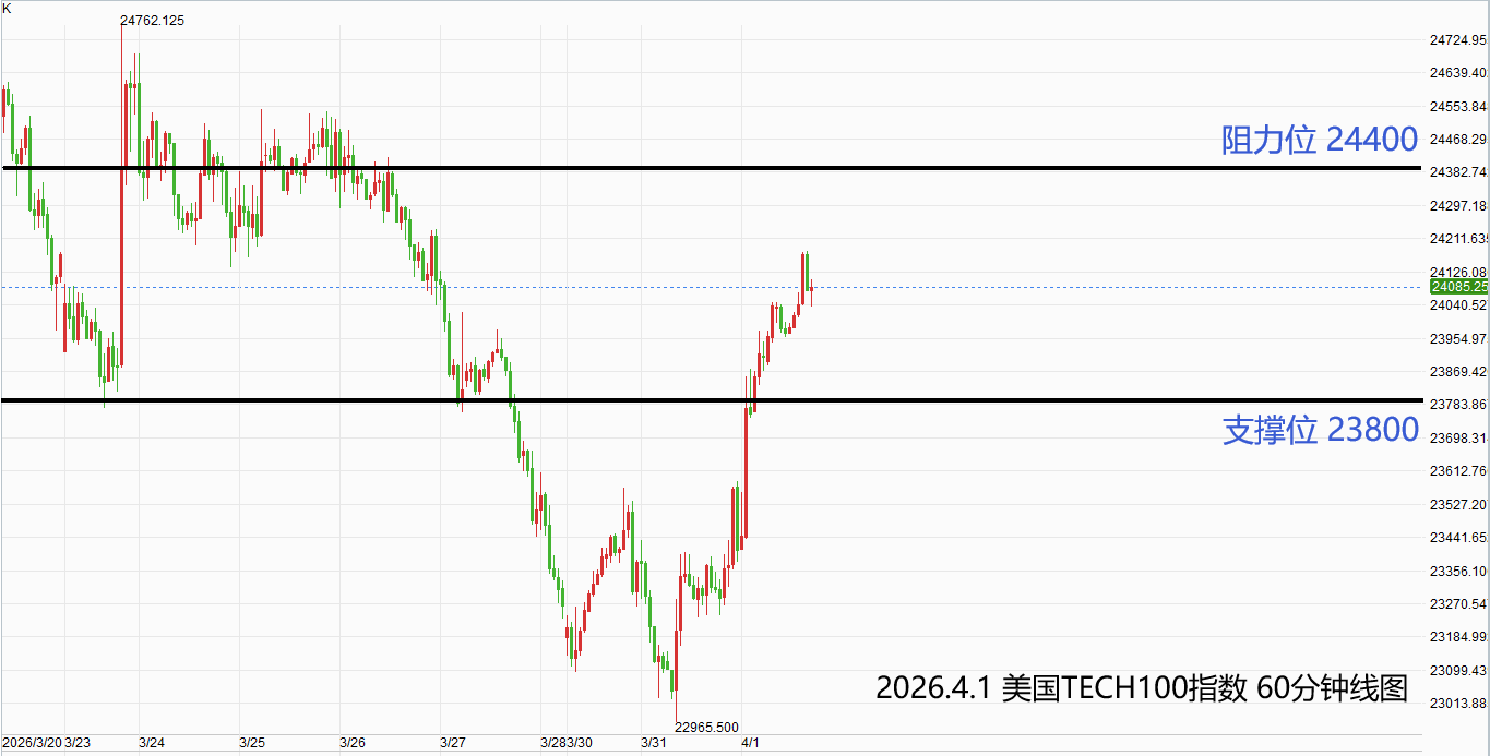 美国TECH100指数:激进者偏多操作,多单参考价23900-23960,止损位23800,获利目标24400附近/以上。