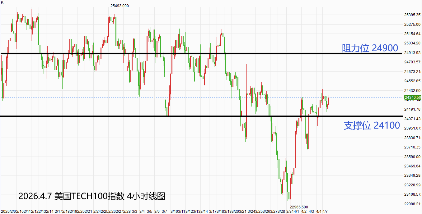 美国TECH100指数:激进者偏多操作,多单参考价24300-24350,止损位24100,获利目标24900附近/以上。