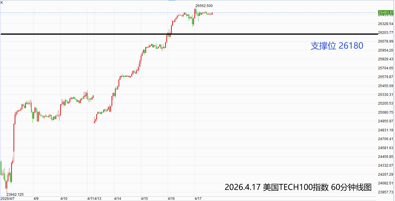 美国TECH100指数:激进者偏多操作,多单参考价26280-26300,止损位26180,获利目标26680附近/以上。