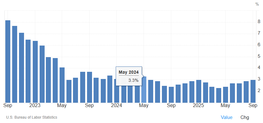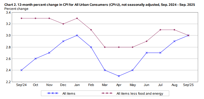 需要指出的是,本次CPI报告是美国联邦政府关门期间唯一允许发布的官方经济数据。因为美国社会保障局需要用于在11月1日之前计算并公布年度生活成本调整(COLA)。