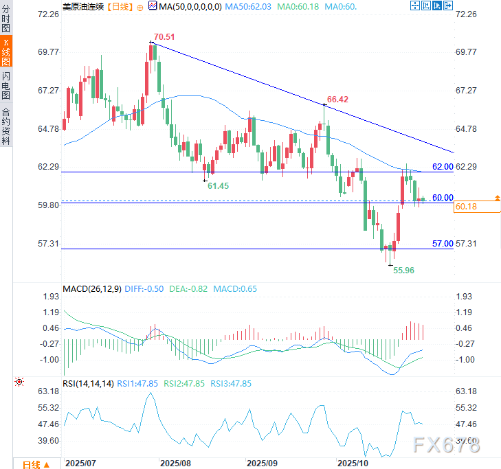 60美元——近期关键位:此为短期重要心理关口。只要价格在该点位附近震荡,市场或将维持横盘整理态势。