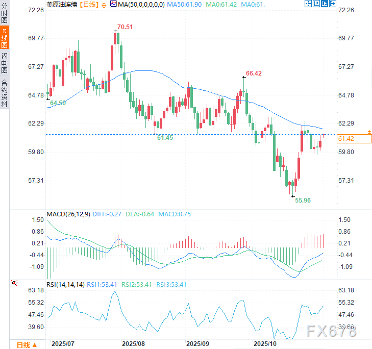 汇通财经APP讯——美原油连续价格本周一(11月3日)小幅上涨,涨幅约0.69%,交投于61.40美元/桶附近。此前OPEC+决定暂停原定于2026年第一季度的增产计划,这一决定与贸易摩擦缓和共同稳定了市场情绪,强化了全球增长改善的预期。随着原油价格稳守60美元关口,市场正密切关注收益率利差扩大和市场广度改善之际经济复苏势头的进一步确认。
