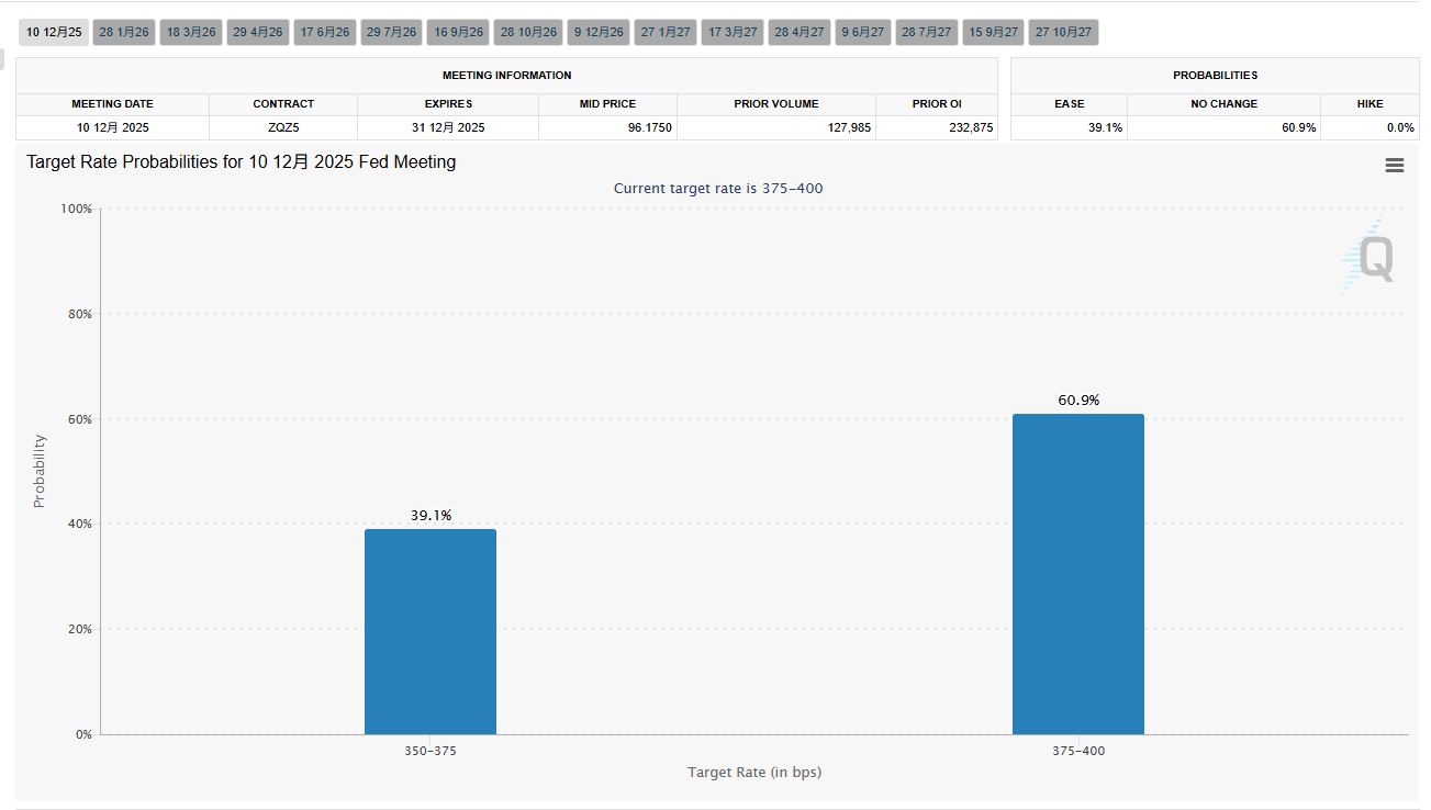 但美联储大部分官员的观点似乎都与特朗普政府相左,市场对12月降息的预期也越来越低。克利夫兰联储主席贝丝·哈马克周四就警告称,目前进一步降息可能对经济带来广泛风险。