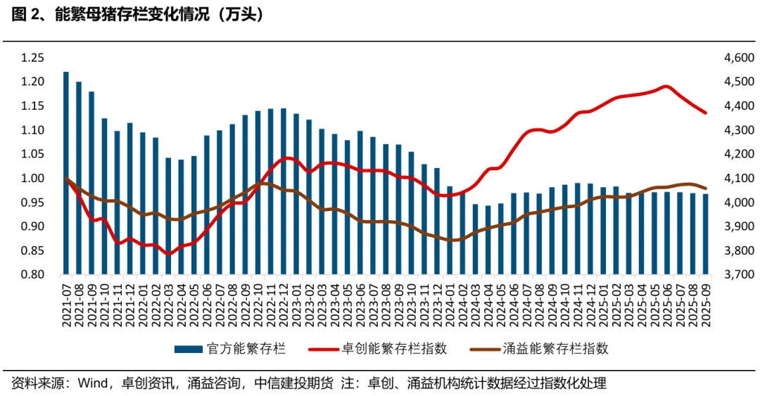 2025年Q4可能是上市企业季度盈利的分化期,成本管控压力较大的企业预计可能出现单季度亏损。现阶段已经进入产能去化窗口期,至少需要跟踪能繁母猪存栏连续数月环比下降并进入调控目标区间(3900万头,较2024年11月高点下降约4.4%),供需关系才有望得到根本改善。