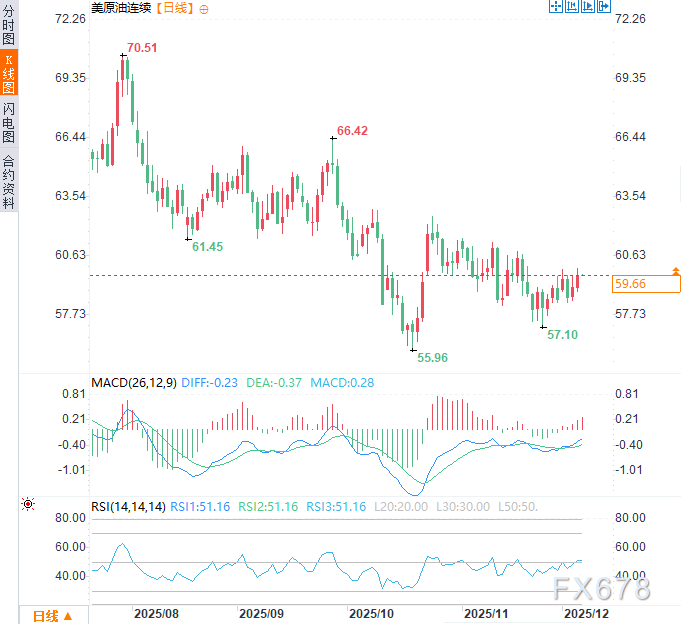这些动态在短期内可能对油价构成轻微支撑,但中长期影响偏中性,且可能加剧市场波动性。周五(12月5日)美原油价格于每桶59.65美元附近震荡。