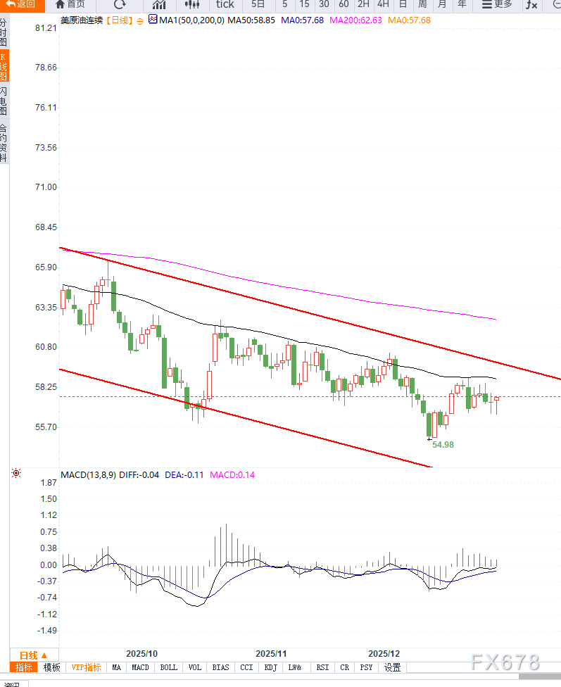 综合来看,在OPEC+维持产量不变、委内瑞拉中长期供应预期抬升的背景下,WTI原油日线级别仍以弱势震荡偏空格局对待,只有重新站稳60美元上方,才有望逐步缓解当前的技术性下行压力。