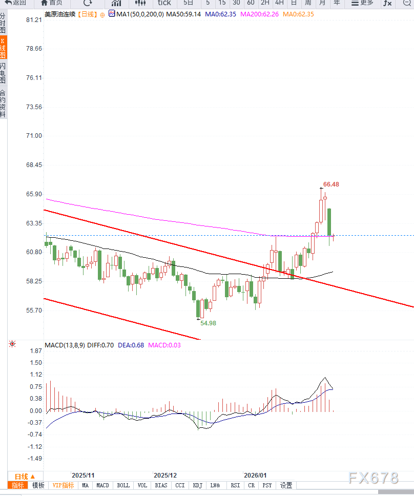 从操作逻辑来看,短期市场更应关注风险控制而非追逐反弹。61美元附近的支撑有效性将成为判断后续走势的关键,一旦跌破,市场情绪可能进一步转向防御。