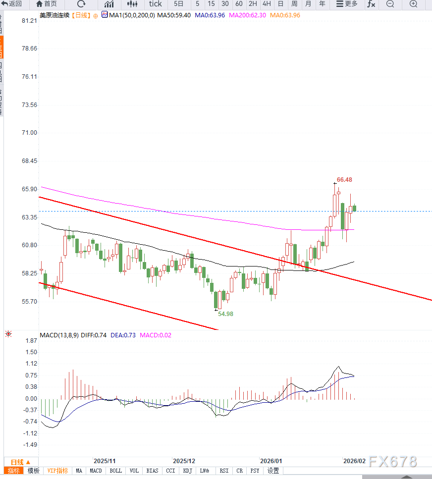 若该支撑维持有效,油价大概率延续区间整理;反之,一旦日线级别有效跌破,技术面或进一步打开向下调整空间。上方阻力则集中于前期高点66美元附近,在缺乏新的基本面利多刺激前,突破难度依然较大。