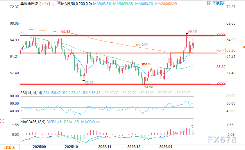 在美伊谈判持续推进的背景下,油价上行空间大概率将被压制在66.48-66.60美元压力区间下方。若谈判在周五后仍无实质进展,市场情绪转弱可能推动油价进一步走弱。