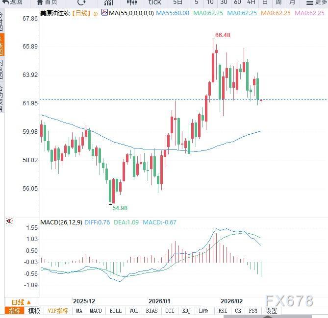 美伊核问题谈判取得“原则性共识”,市场对潜在制裁松动及伊朗原油出口回升的预期升温,国际油价盘中快速下挫。美原油接近62美元附近,重回箱体下沿。尽管双方强调谈判仍面临困难,但风险溢价明显回落。短线走势进入技术关键区间。