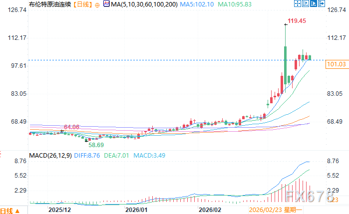北京时间3月18日13:39 布伦特原油连续 报 101.03 美元/桶