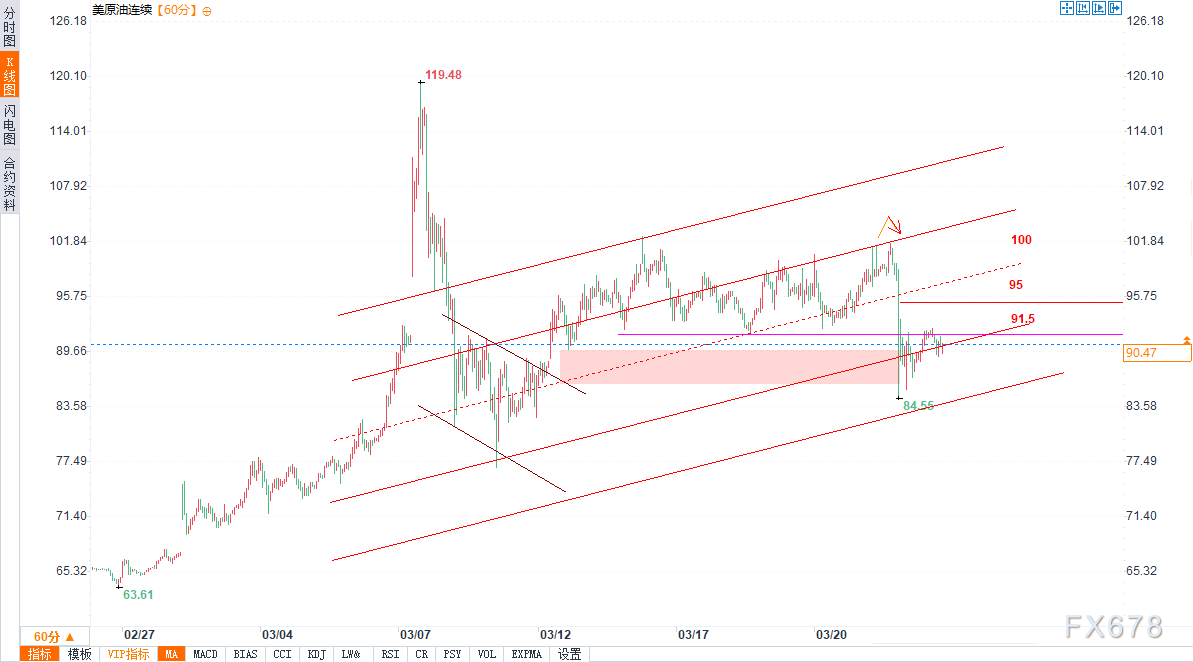 短期内,油价大概率在通道下轨与91.50美元之间震荡整理,至少需等待更强的消息面催化剂,尤其是霍尔木兹海峡相关局势进展,才可能打破这一格局。
