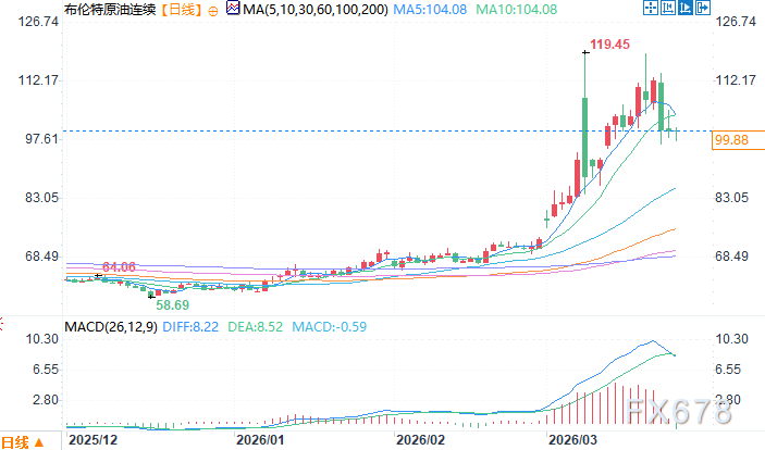 北京时间3月25日15:20 布伦特原油连续 报 99.88 美元/桶
