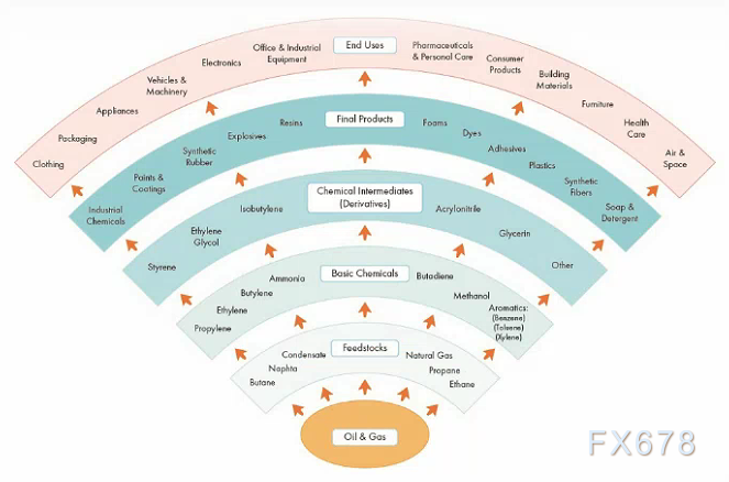 石化市场一旦受冲击,就会产生连锁反应,因为石化产品会进入价值数万亿美元的各种商品里,而这些商品又会进入更多商品中,所有环节都离不开同一套石化原料。