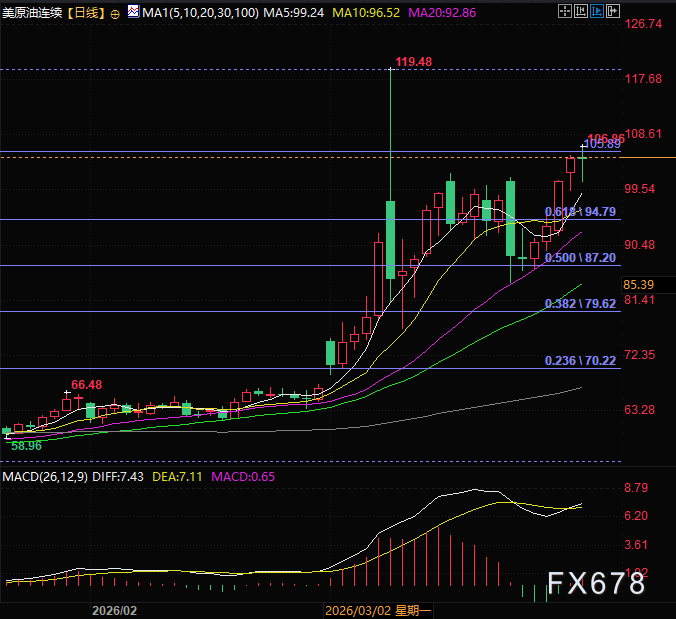 (WTI原油期货连续日线图,来源:汇通财经旗下易汇通)