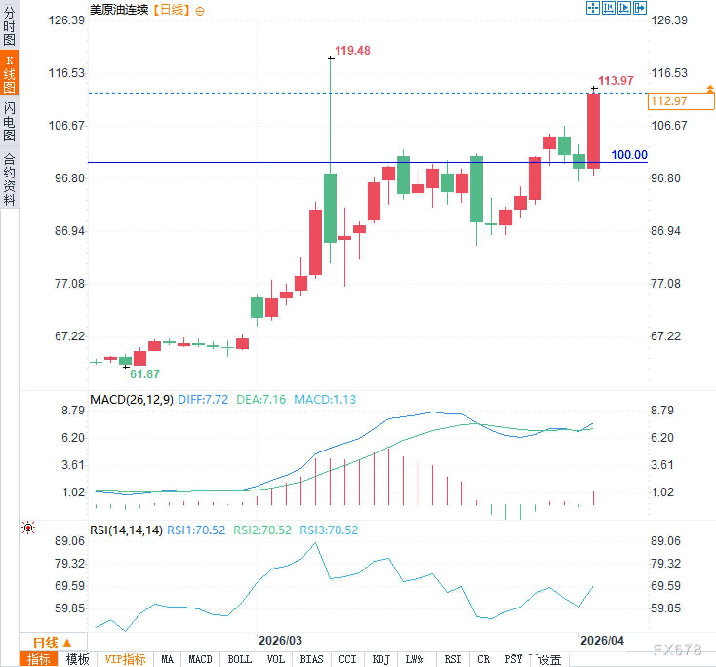 4月2日周四,WTI原油期货价格北美时段大幅飙升超过12%,触及112美元/桶上方区间,创下2022年6月以来的最高水平。这一行情直接源于美国总统特朗普就伊朗局势的最新表态,他明确警告冲突可能延续数周,并承诺将在未来几周内实施极端严厉的军事行动。市场对全球石油供应持续中断的担忧急剧升温,尤其是霍尔木兹海峡这一核心运输通道缺乏明确重开路径或外交缓和信号。