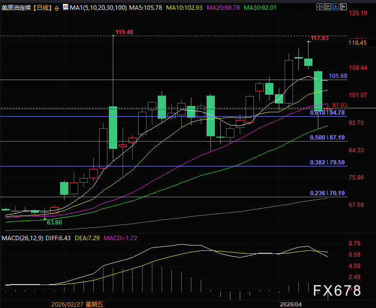 技术面WTI原油期货正在重新站位97的支撑位,下一个关键压力位在102附近,目前支撑位在97和94.78附近。