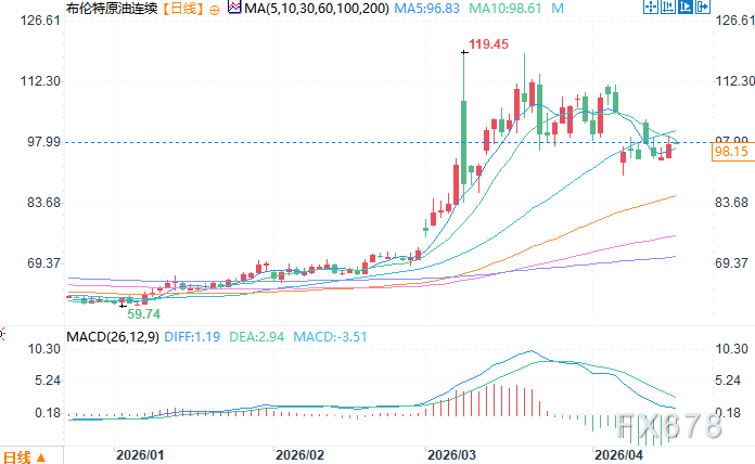 北京时间4月17日13:20 布伦特原油连续 报 98.07 美元/桶