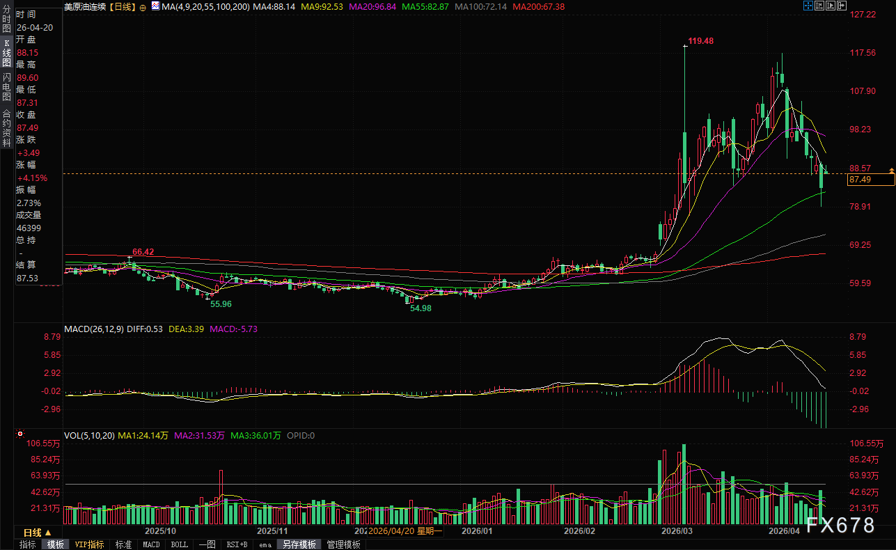 事件起源于上周五(4月17日),伊朗外交部长阿巴斯·阿拉格齐在其社交媒体账号上公开宣布,霍尔木兹海峡在黎巴嫩停火框架下“完全开放”,允许商船按照协调路线通行。这一表态立即在国际市场上产生显著影响,油价出现明显下跌,美原油上周五盘中一度下跌13%至78.97美元/桶,为3月10日以来新低,收报84.00美元/桶,周线跌幅高达12%。美国总统特朗普也迅速在社交平台上予以积极回应,称此举为谈判带来积极进展。